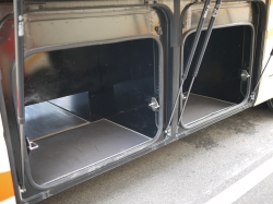 平均的な中型貸切バスで、トランクの大きさは高さ55cm×横幅70cm×奥行き60cm程度のが2つあります。